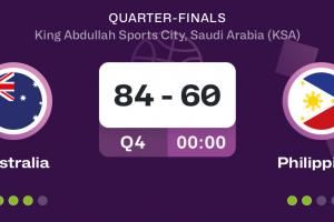 本场比赛,澳大利亚首节便火力全开全面开花,打出了17分的领先优势,而防守端他们也展现出了强悍的压制力,打乱了菲律宾的节奏。