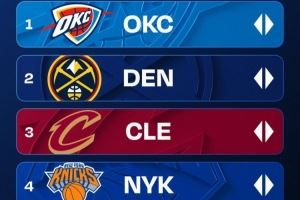 1-5:雷霆、掘金、骑士、尼克斯、森林狼