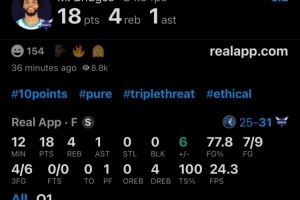 迈尔斯-布里奇斯,首节出场12分钟,9投7中,三分6中4,拿到18分4篮板1助攻。