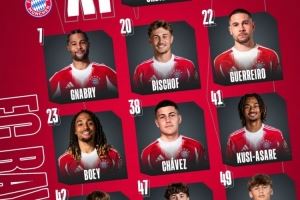 拜仁替补:26-乌尔赖希、48-克拉纳克、2-于帕梅卡诺、4-若纳坦-塔、6-基米希、8-格雷茨卡、9-凯恩、14-迪亚斯、17-奥利塞、27-莱默尔、36-维斯多姆-麦克、44-斯坦尼西奇