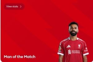 此役萨拉赫为利物浦踢满全场,打进1球,英超官方宣布,他当选本场比赛球迷票选全场最佳球员。